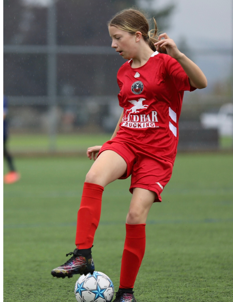 We're looking striking in our new solid blue home kit and solid red away kit, complete with the Sandhar Trucking logo of our club sponsor. The Spring teal tops will move to be our training tops throughout the Fall/Winter Season.